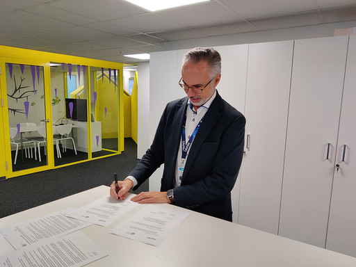 Vuores Palvelun toimitusjohtaja Reetta Hynynen allekirjoittamassa sopimusta.